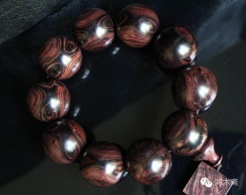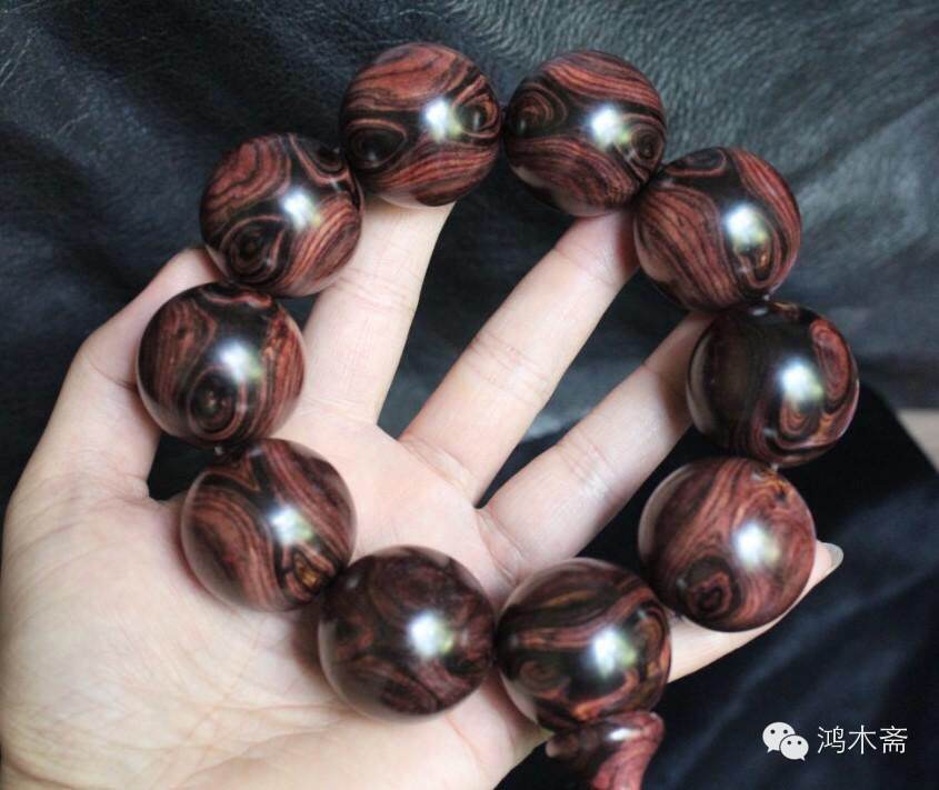 上面图片是打磨2000目,编制成品后效果,目前这条手串在等待精磨至5000目砂纸。 看完此文,当明白,1.海黄老根料,是做一条少一条,可以说不可再生,新的黄花梨树,不可能长成百年后再砍伐,都是几十年能做珠子,能做手把件了就砍掉卖钱,自家的树,你不砍,有人会偷,所以百年的老根料,更是不可能,当然了,原始森林保护区,还有海口公园里面还是有的,只是..........你懂得..........2.对眼鬼脸极品的,的确是太贵了,为了追求颗颗纹理一致的最佳效果,对原材料,对人工都是非常浪费的。所以其价格也真的是马未都老师说的,海南黄花梨从来不是普通老百姓玩的玩意,真的是太贵了...........